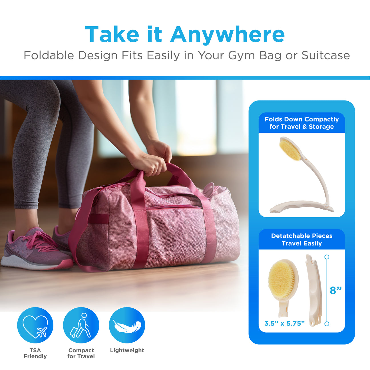 The 3-in-1 Folding Bath Brush Set keeps your skin clean, soft, and rejuvenated—at home or while traveling.