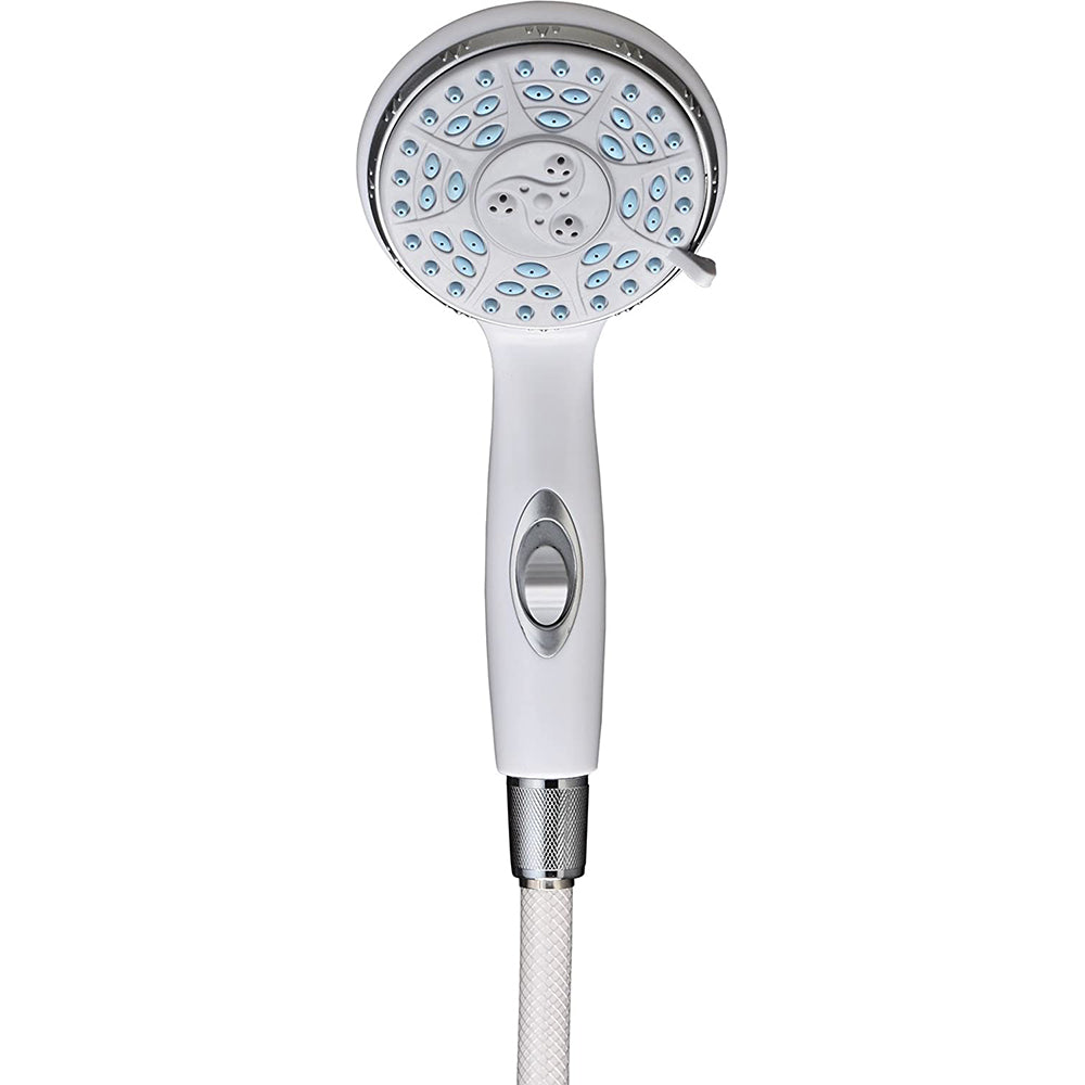 Featuring 5 deluxe spray settings, including Massage and Shower Stop, you can customize your shower experience for comfort and relaxation. The built-in On/Off switch provides convenient water flow control, and the included wall mounting holder keeps the shower head securely in place when not in use.