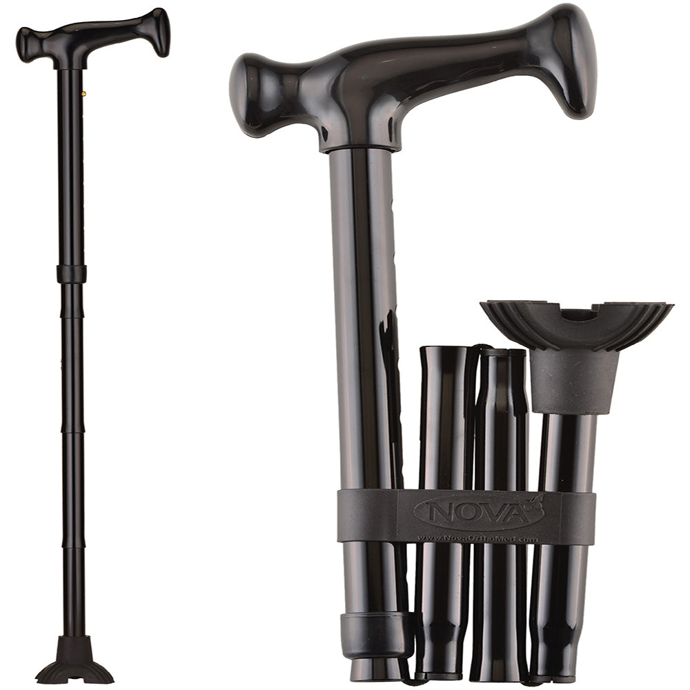Nova Folding Cane with Mini Quad Tip, Black # QT3010 – Compact, Stable & Travel-Friendly