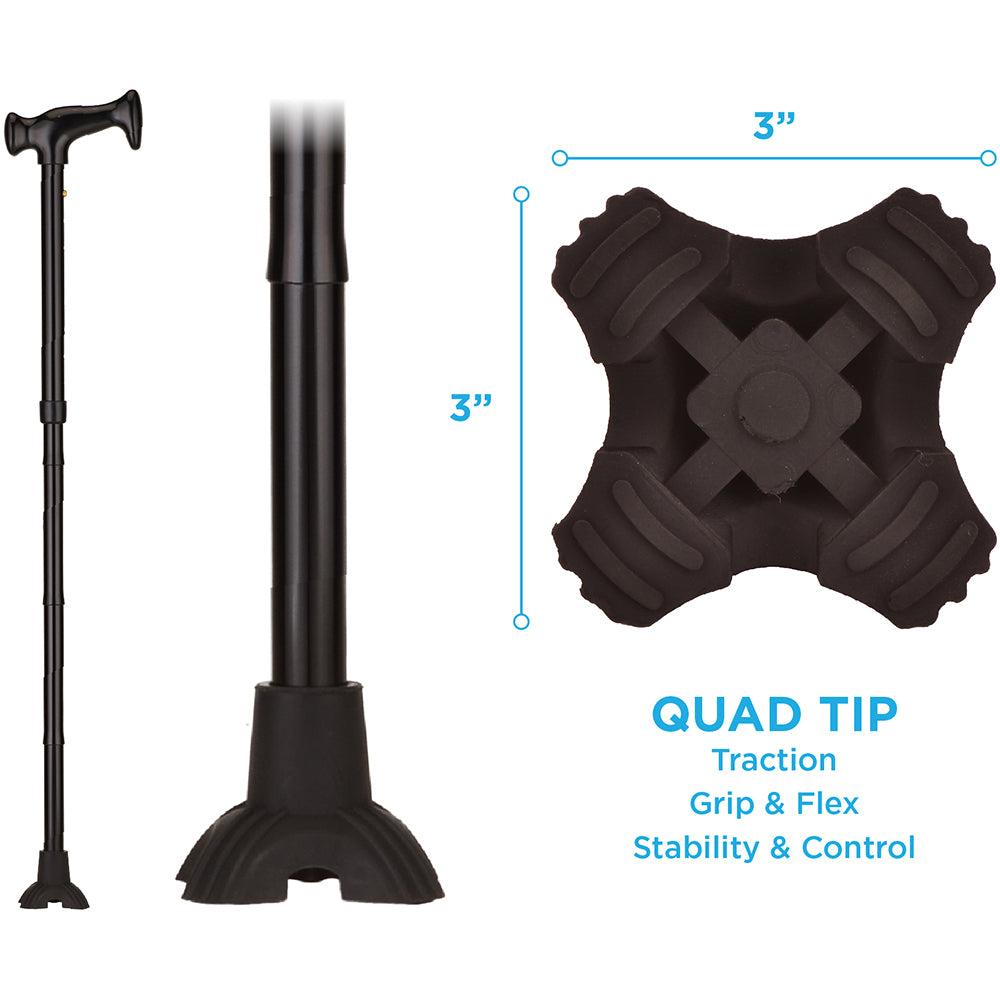 Mini Quad Tip Base – Provides extra traction, stability, and balance while staying compact