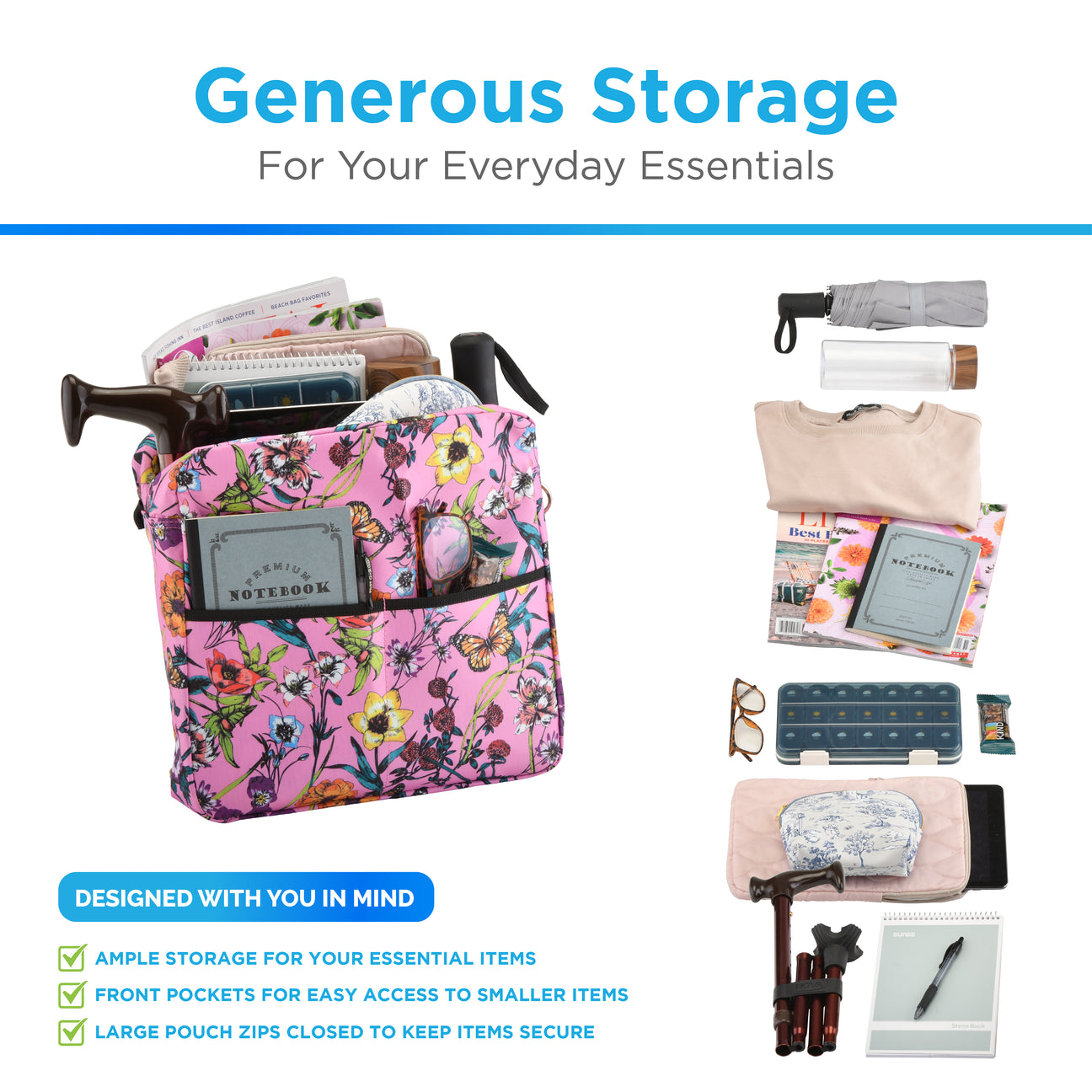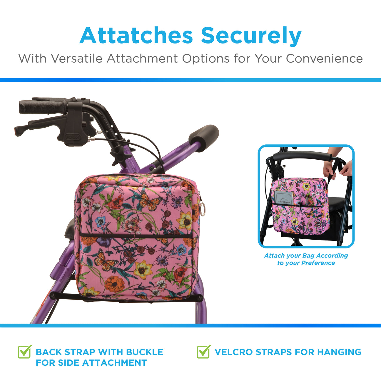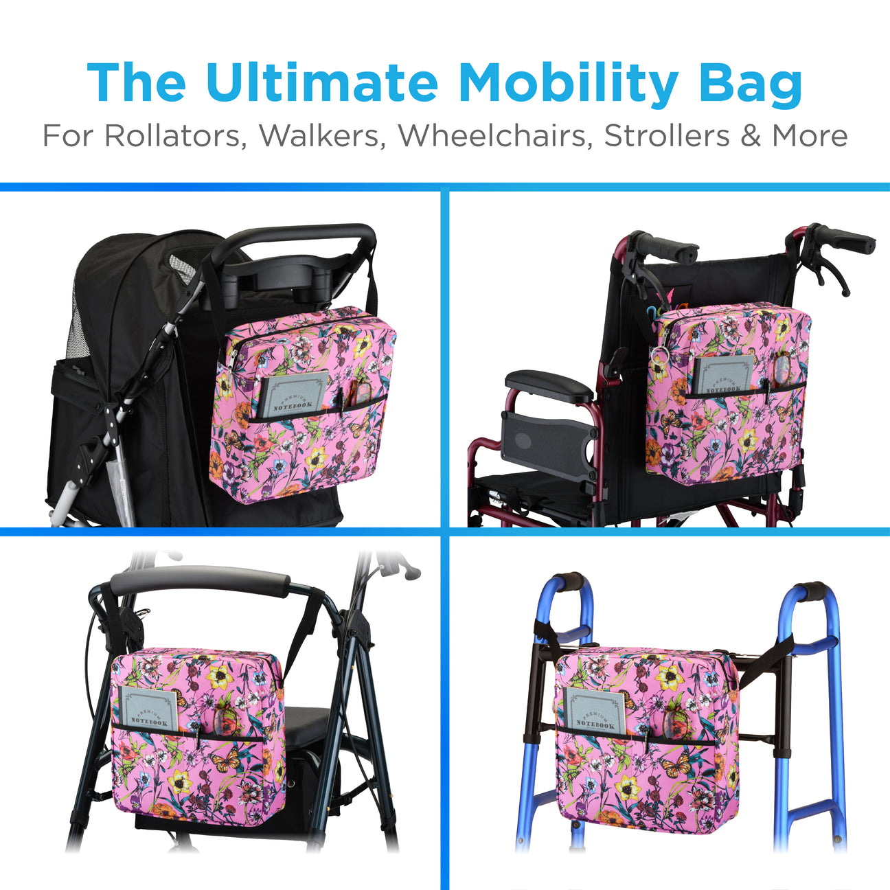 Perfect for walkers, rollators, transport chairs, wheelchairs, and scooters, it provides secure storage for everyday essentials while adding a touch of style to your mobility device.
