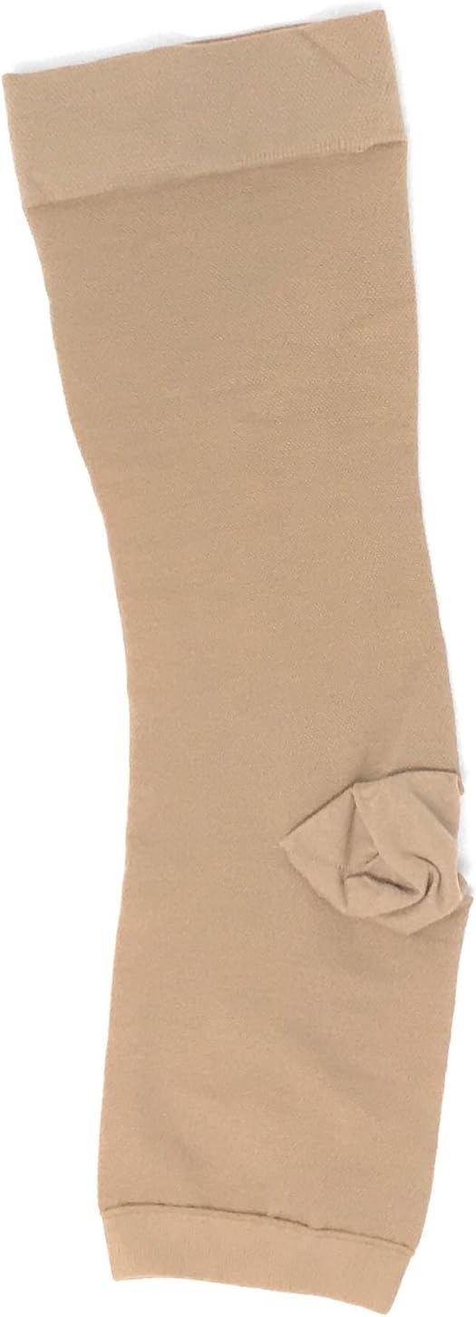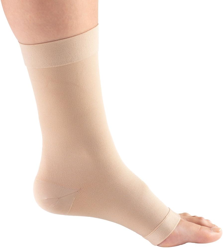 A person's foot and ankle wear the Provecta Medical Supply Sheer Elastic Ankle Support, a beige sleeve with exposed toes, shown against a plain background.