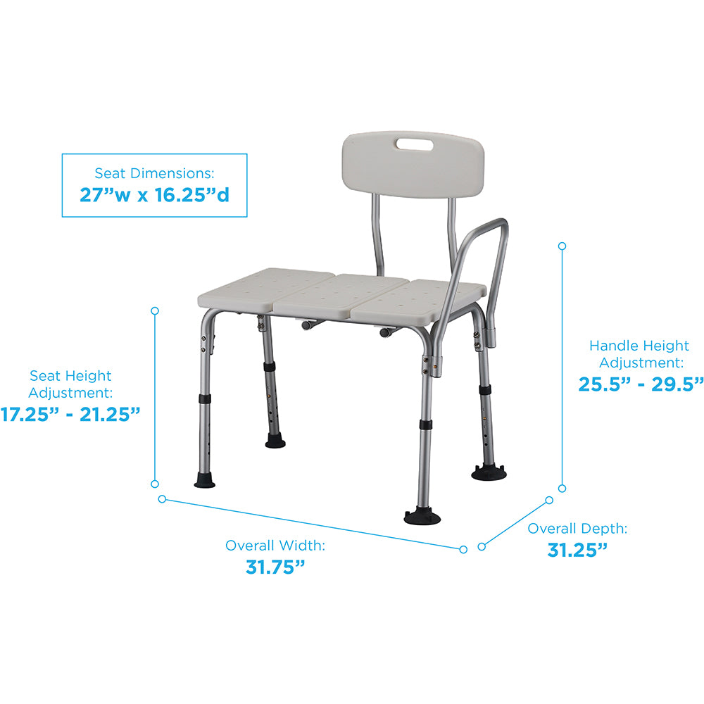 • Extra-Wide Transfer Seat: Generous 27" x 16.25" seat provides plenty of space for stable seated entry and bathing