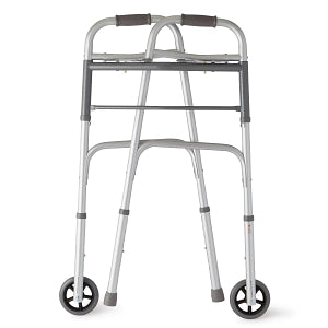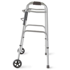 Stay active and move with confidence using the Medline Two-Button Folding Walker. Designed for convenience, stability, and comfort, this lightweight yet durable walker makes everyday mobility easier. With an easy push-button folding design and smooth-rolling 5" wheels, it’s the perfect solution for safe and reliable support at home or on the go.